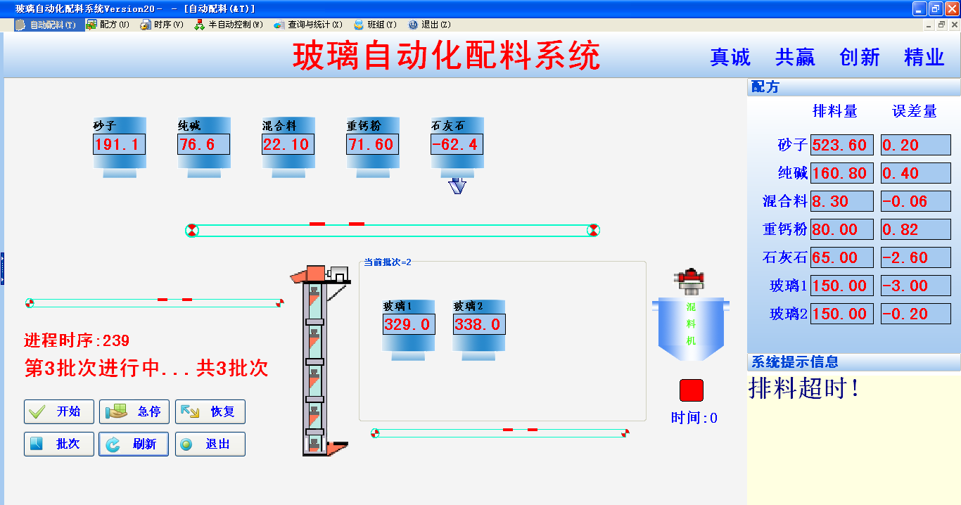 配料時(shí)序:系統(tǒng)按照指定的時(shí)序喂料和排料。
