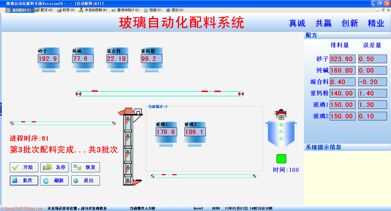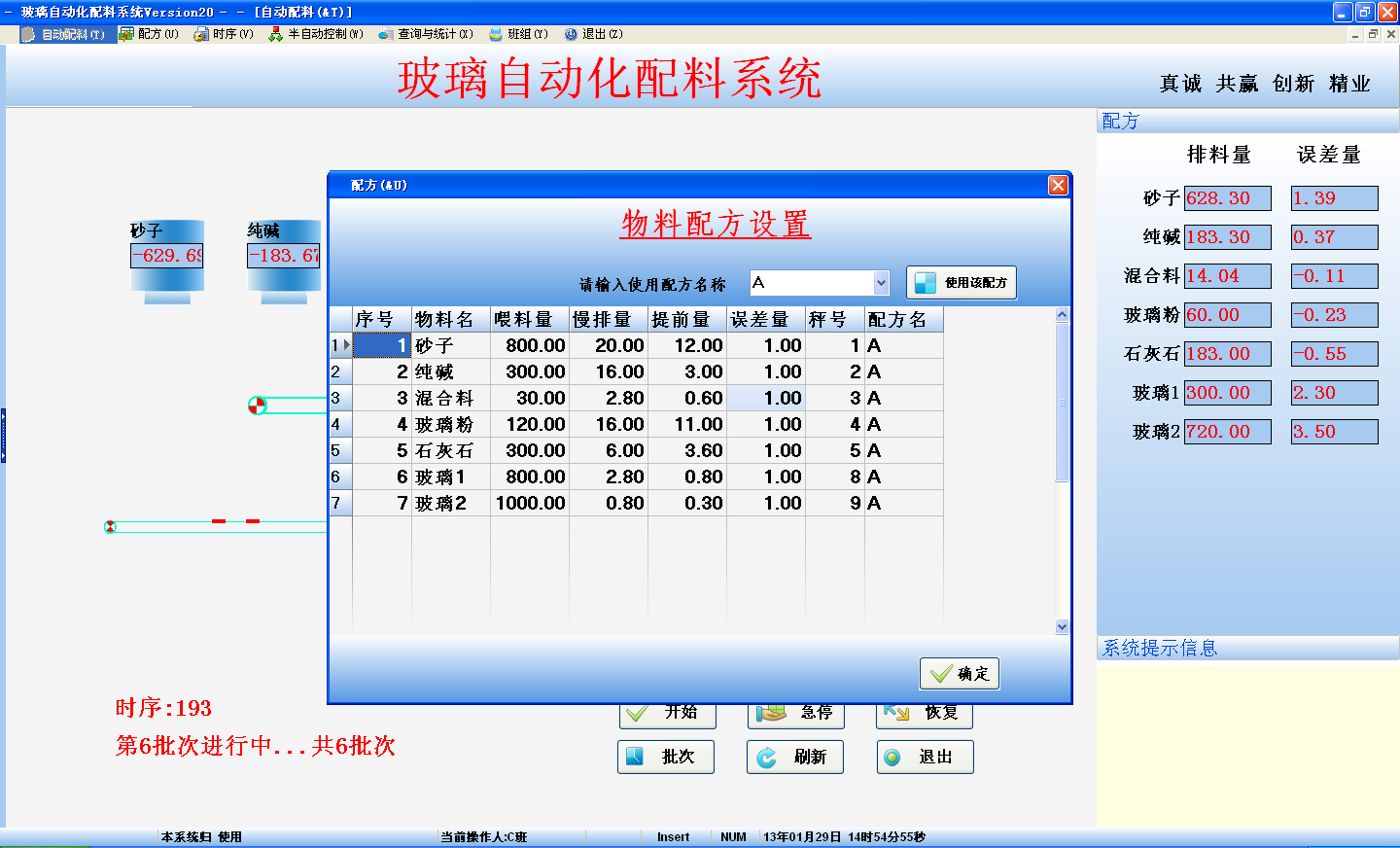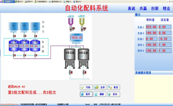 配料批次:一次定義當(dāng)前配方配料幾個(gè)批次,每個(gè)批次工作完成后進(jìn)行第二個(gè)批次。直到總批次完成后,系統(tǒng)自動(dòng)退出配料界面。