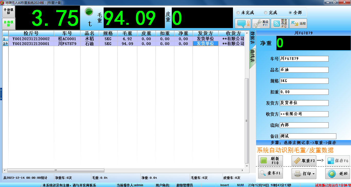 人工半自動稱重模式,同樣具備簡單易操作的特性。同時集成在我們的軟件系統(tǒng)中,隨時均可以使用。
